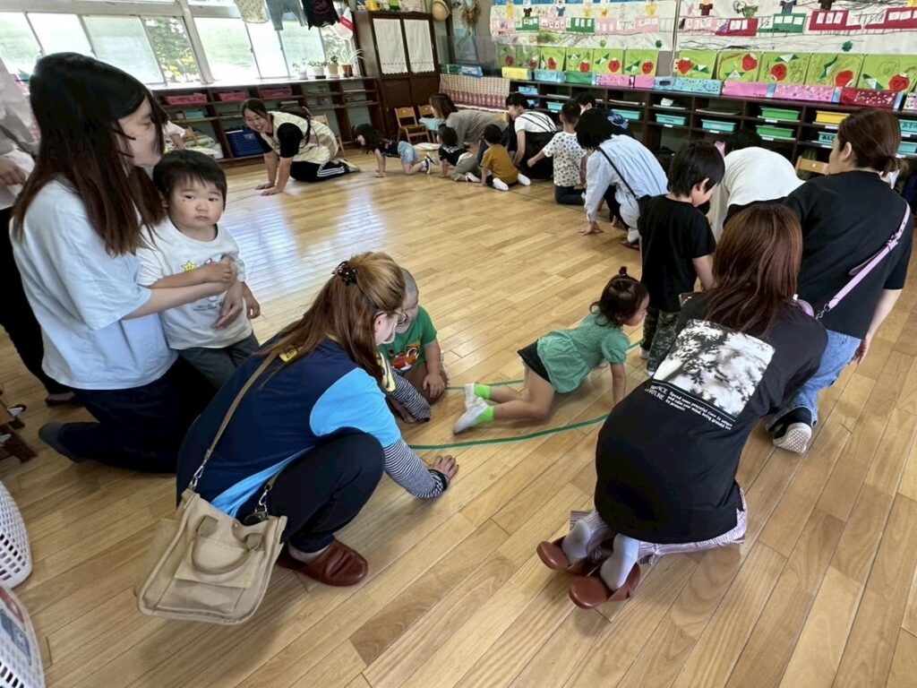 つくし組保育参観 2026.02.04 幼稚園日記 保護者のみなさまの温かい見守りのおかげで、和やかな雰囲気の中、無事に行うことができました。 当日は、子どもたちが日々楽しんでいる「電車ごっこ」の世界を、実際に体験していただくことで、その面白さや奥深さを感じていただけたのではないかと思います。子どもたちも、大好きな遊びを大好きなおうちの方に見てもらえることで、とても嬉しそうな表情を見せていました。