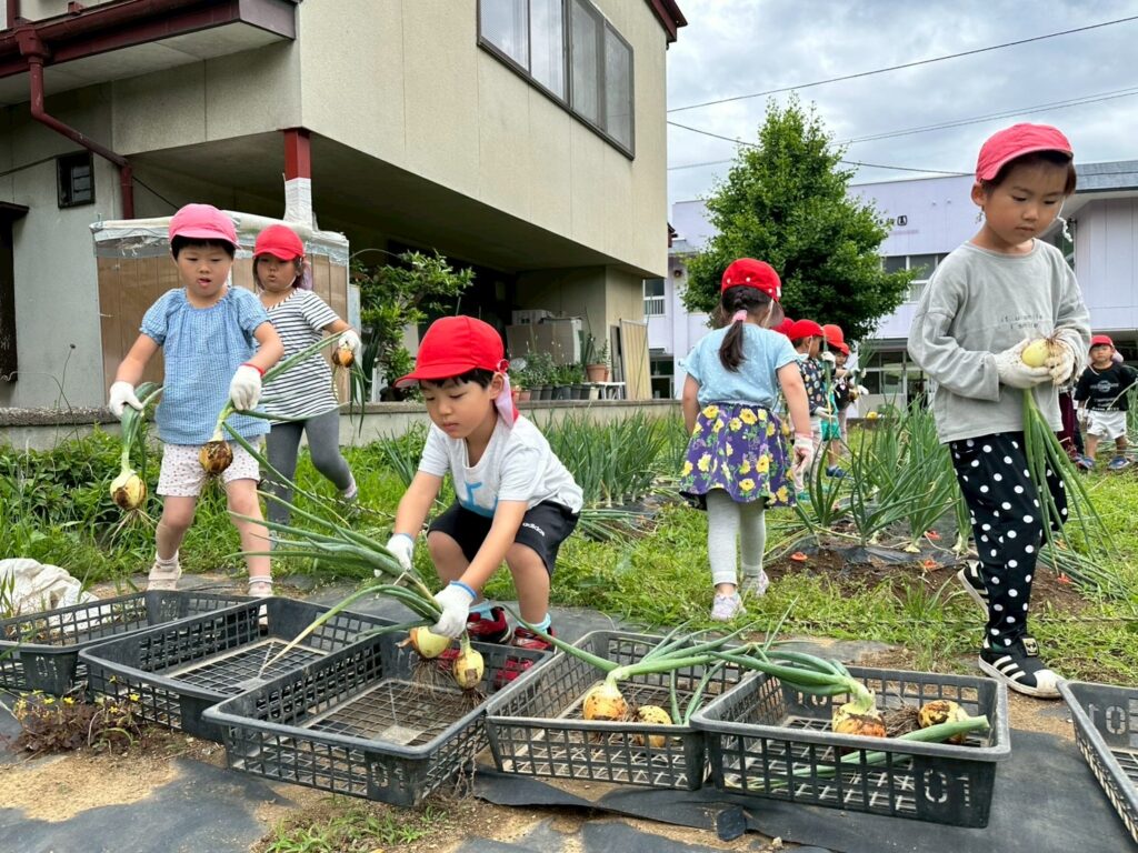 玉ねぎの収獲 2026.01.28 幼稚園日記 昨年の秋に種を蒔き、大切に育ててきた玉ねぎが、ついに収穫の時を迎えました。収穫した玉ねぎの数は、なんと758個! 年長・年中組の子どもたちを中心に、数日にわたって収穫作業を行いました。土の感触を手で感じ、玉ねぎを一つひとつ丁寧に抜き取る子どもたちの姿はとても真剣で、生き生きとしていました。 自然の恵みに触れながら、体で感じ学ぶ体験は、子どもたちにとって素晴らしい時間となりました。