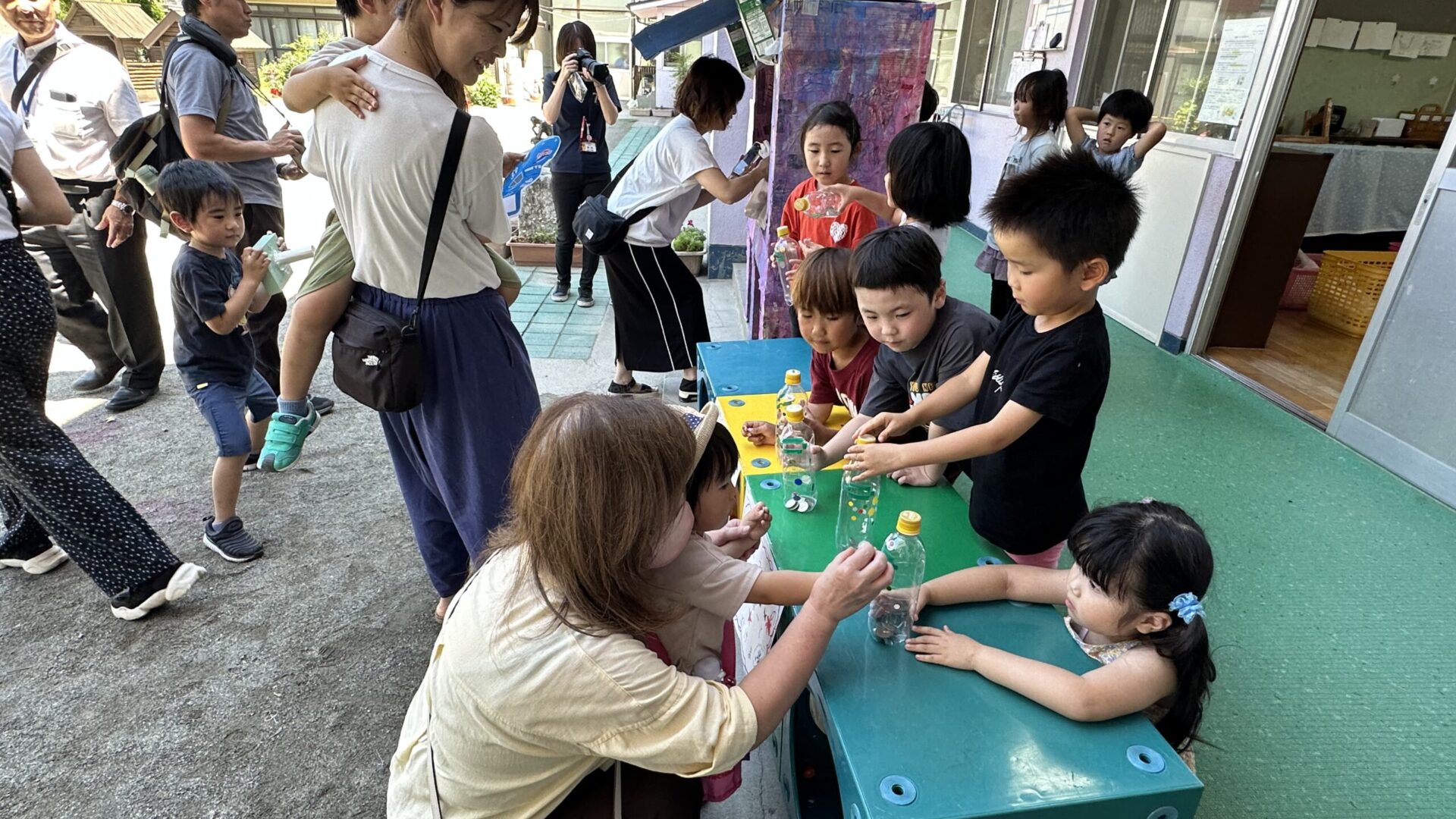 毎年年長児に引き継がれている支援活動について、何度も話し合いを重ねた結果、「お店屋さんを開こう!」と子どもたちが決めました。玉ねぎを収穫したあと、屋台を作ったり、大きさごとに袋詰めをしたり、みんなで力を合わせて準備を進めてきました。販売当日は、みなさまの温かいご協力のおかげで玉ねぎはすべて完売し、売上金を「富士と緑のフードサポート」へ寄付することになりました。