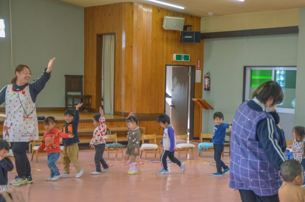 電車ごっこがずっと子どもたちの楽しみとなっていることが見ていてとても伝わってきました。きっとお家の方々と対面し、子どもたちもドキドキがあったと思いますが、ごっこの世界は本当に楽しくて「次はどこに行くのかな?」と私までワクワクしました。友達や先生の顔を見ながら嬉しそうに表現する姿を見ることができ幸せでした。